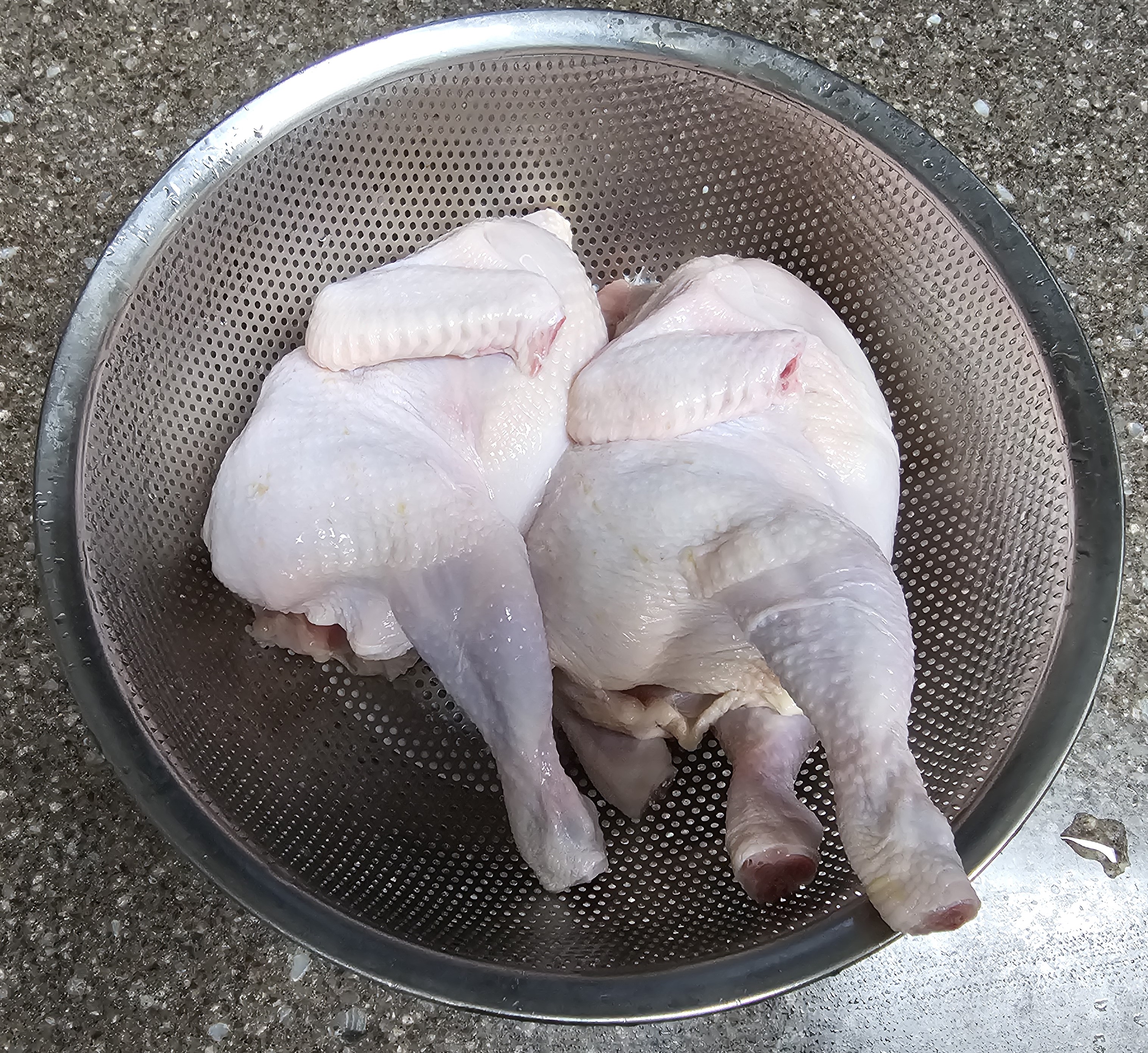 깨끗이 씻은 닭은 체에 받쳐 물기를 제거해준다.