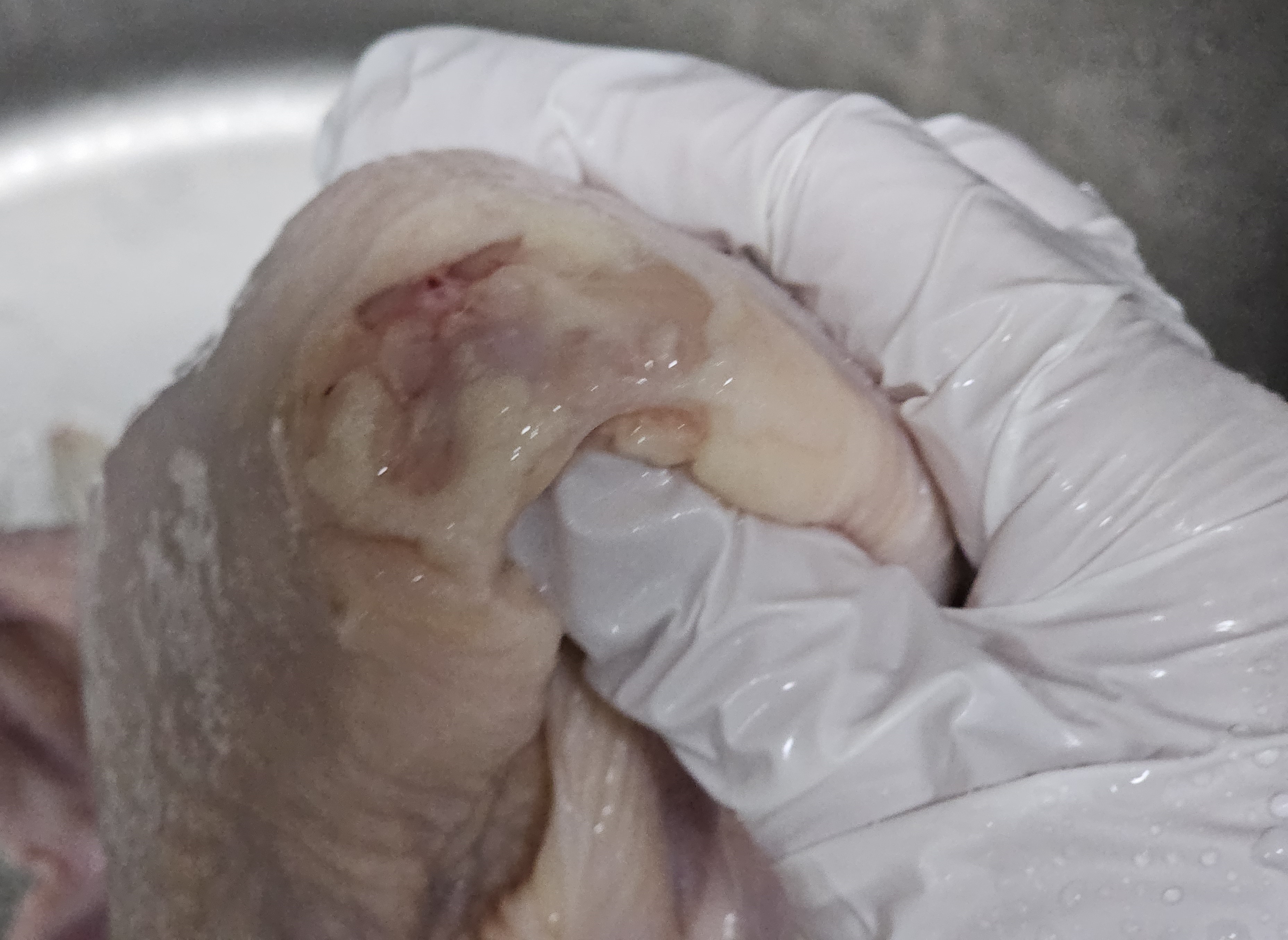 목부분도 잘라주고 날개죽지의 뽀족한 부분도 가위로 제거해준다.