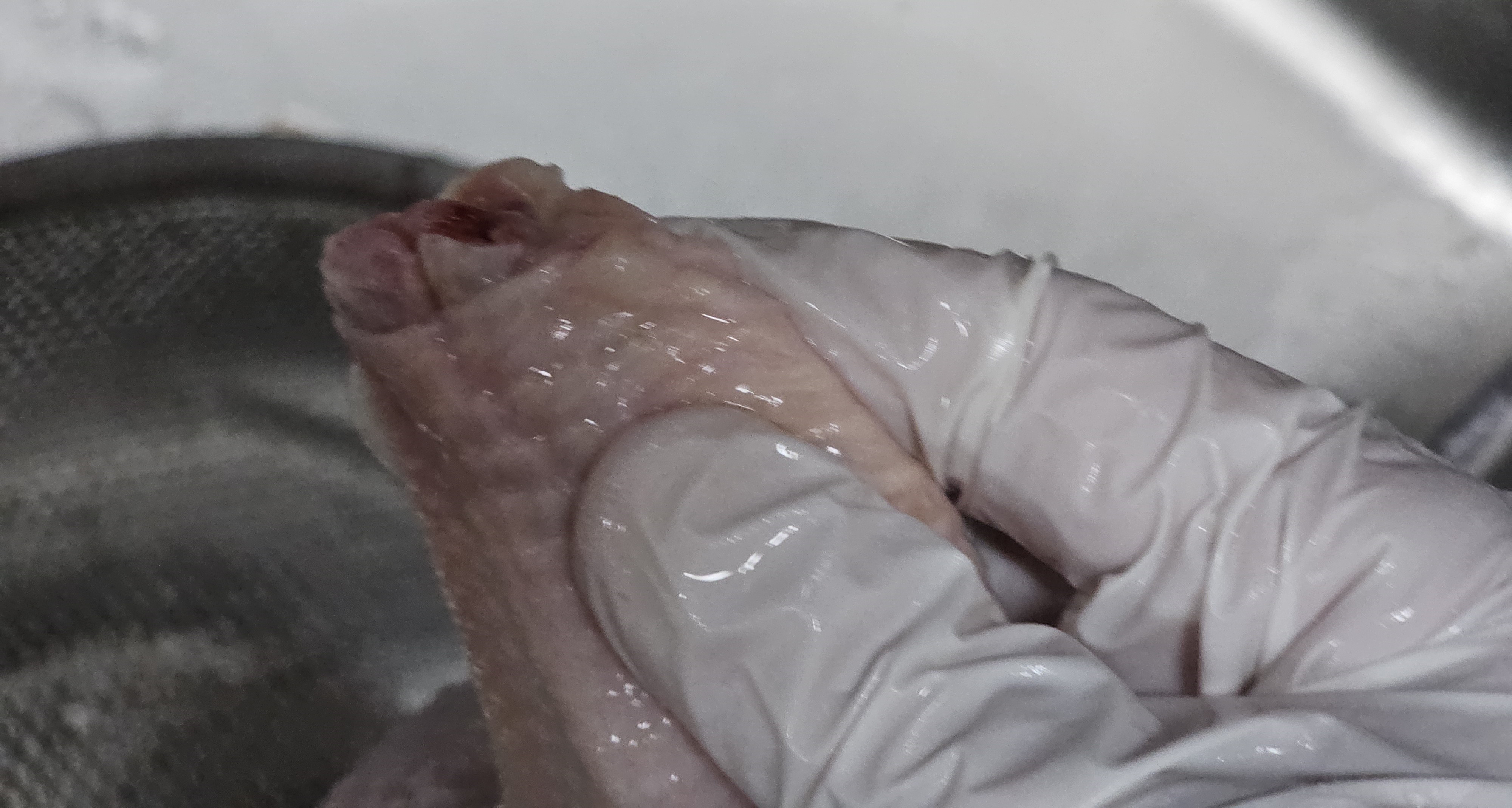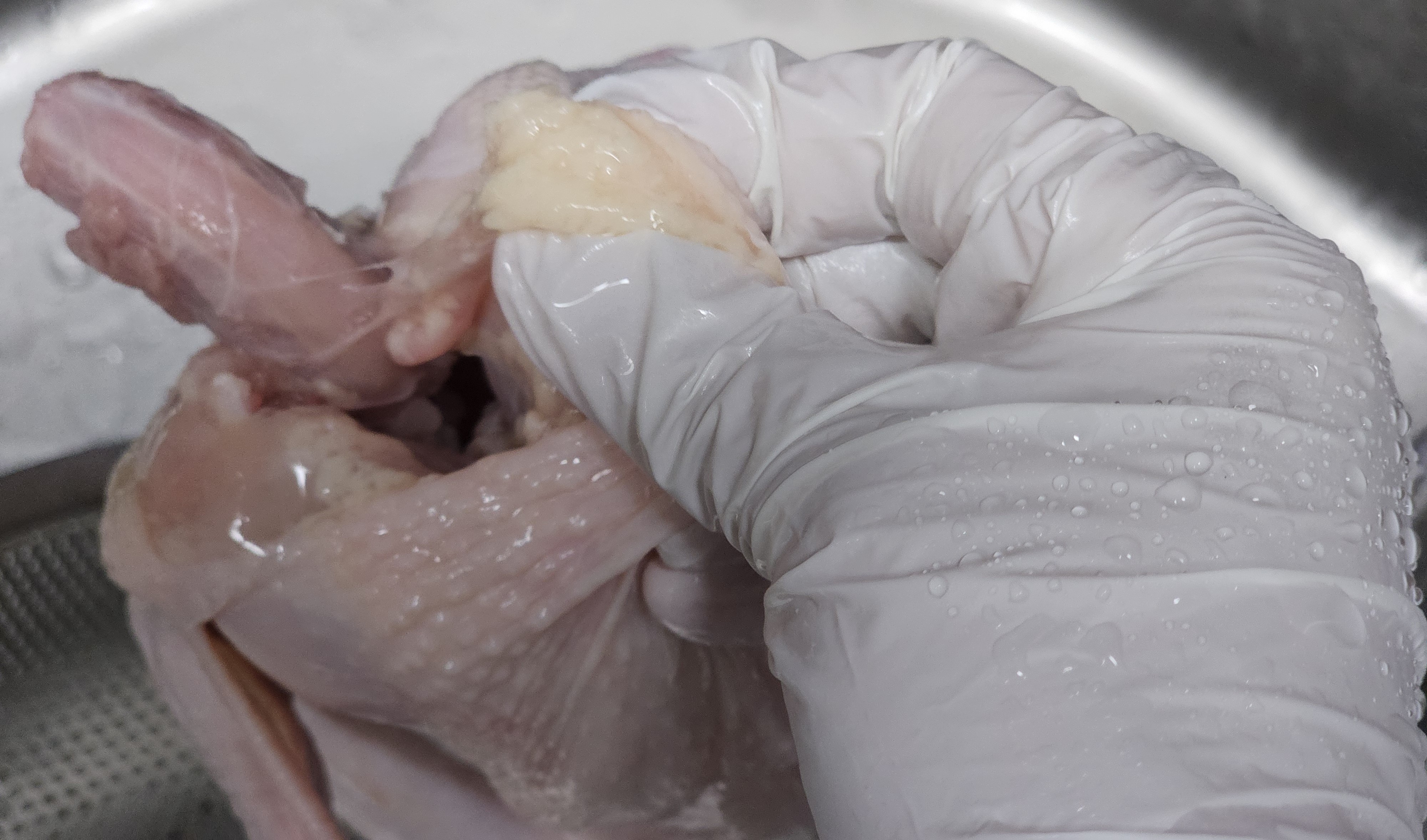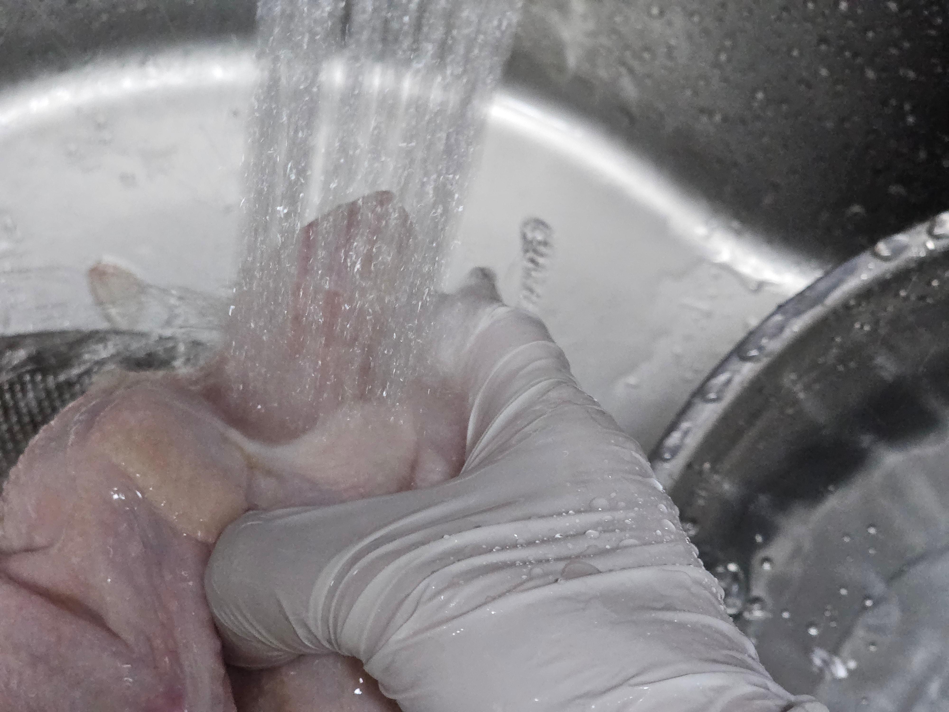 닭 표면이 미끈거리니 일회용 장갑을 끼고 손질해주면 좋다.