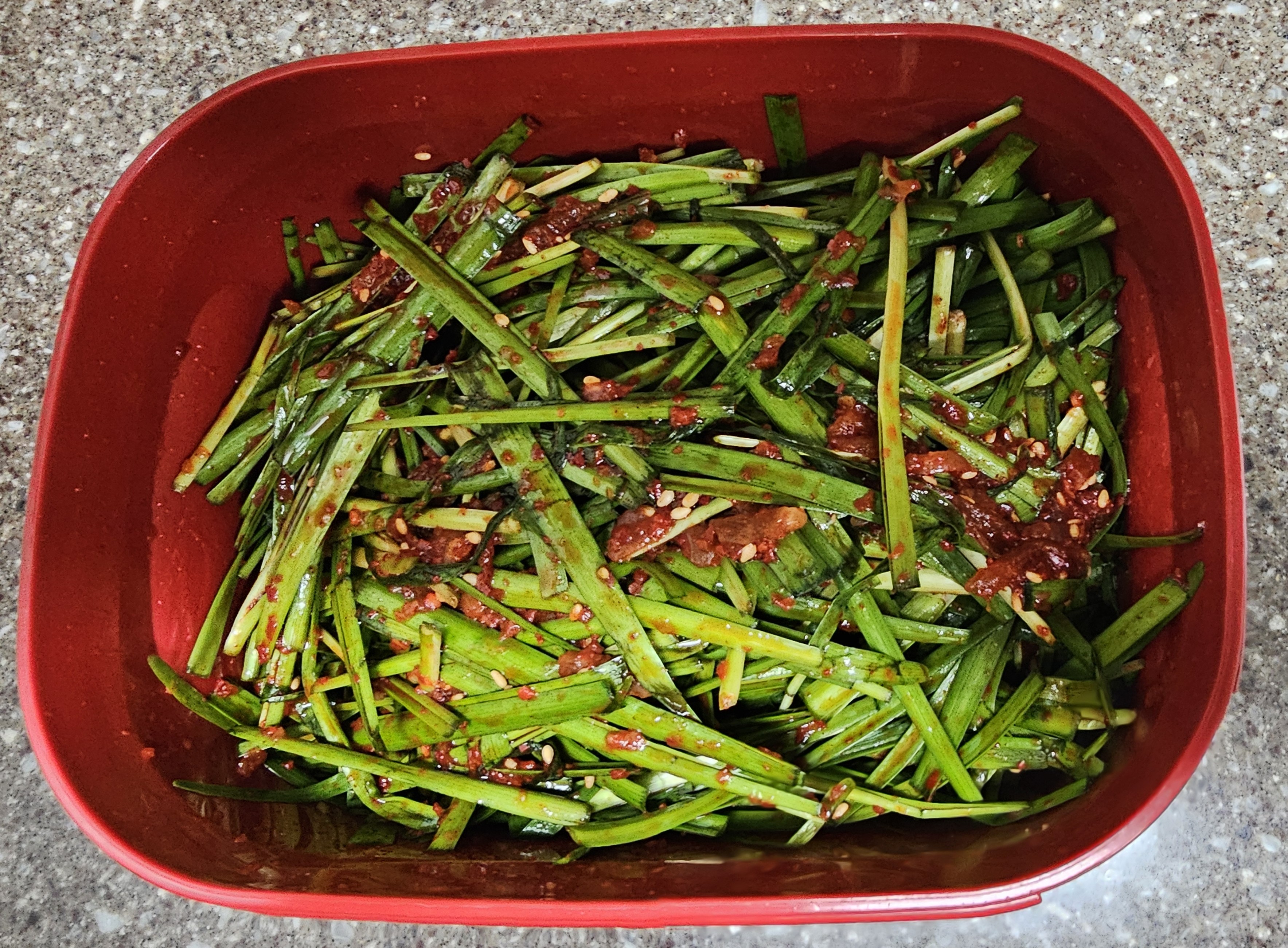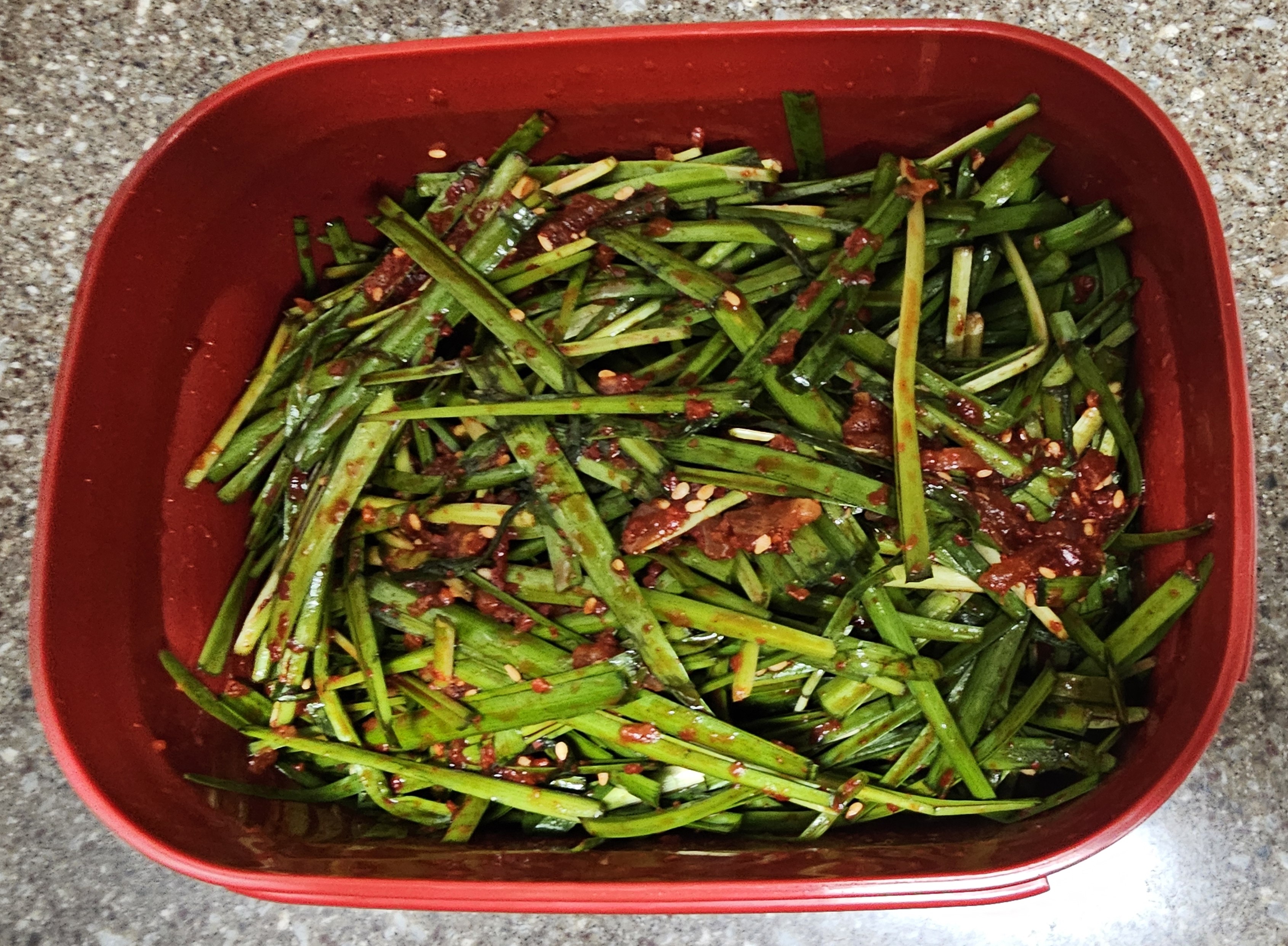 자, 이렇게 해서 맛있는 부추김치가 완성되었습니다.