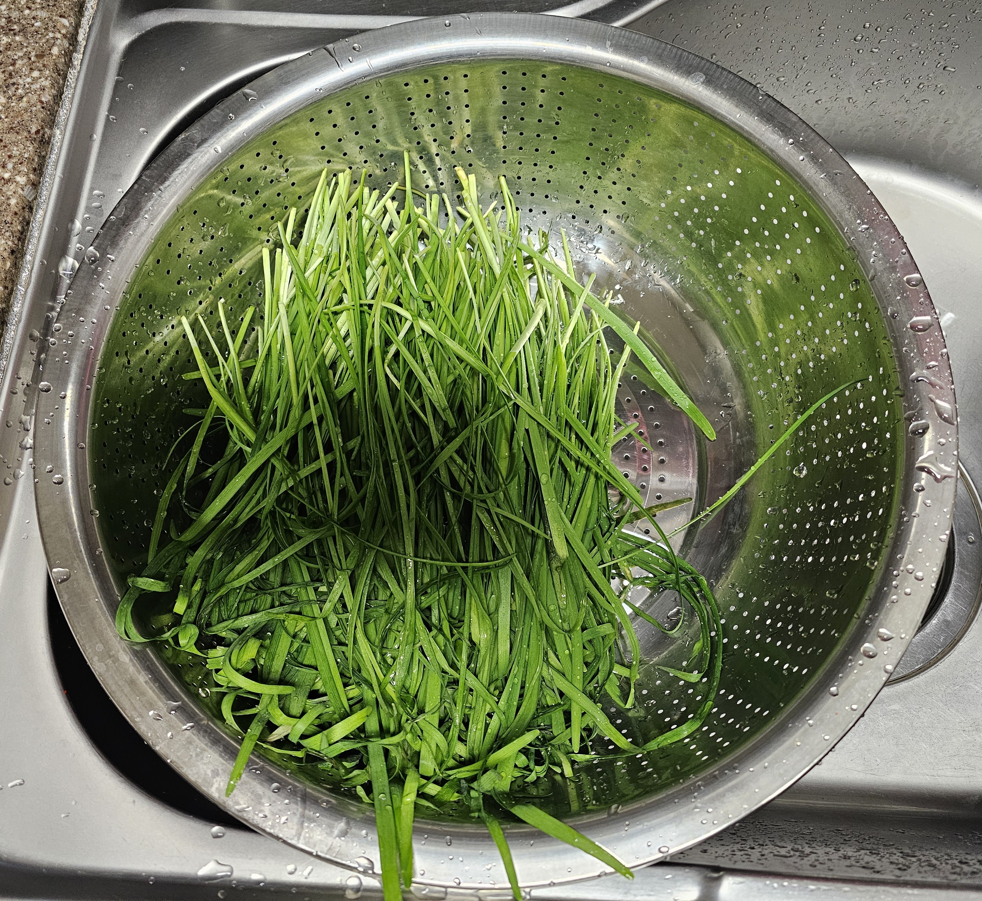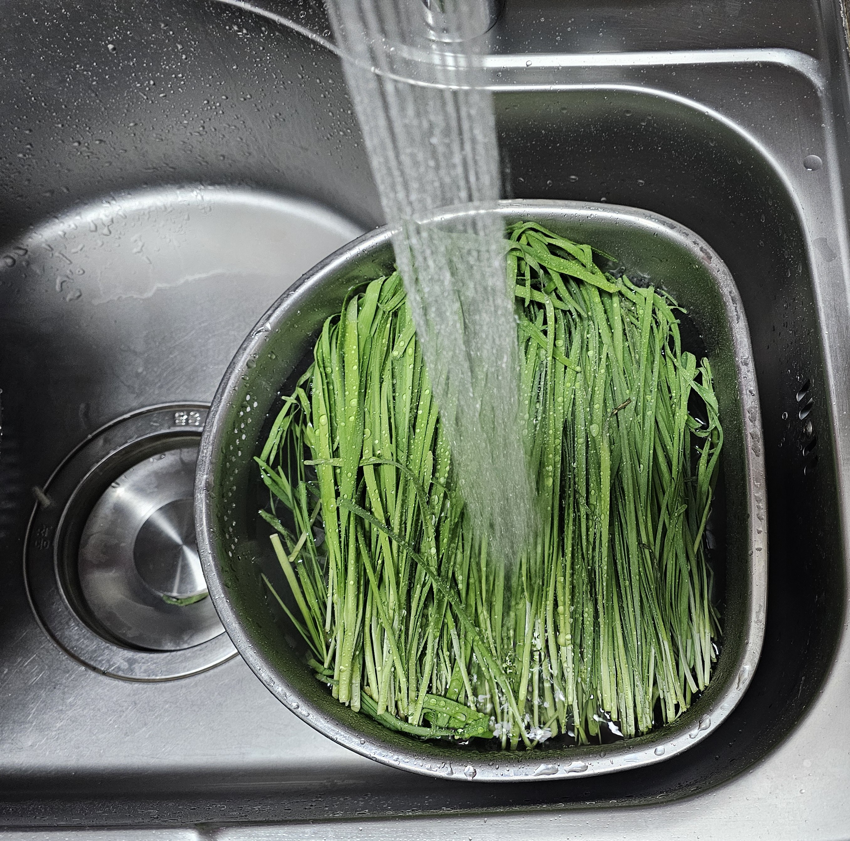 부추는 뿌리 부분을 깨끗하게 씻어서 흙을 제거하고 시든 잎은 잘라냅니다.