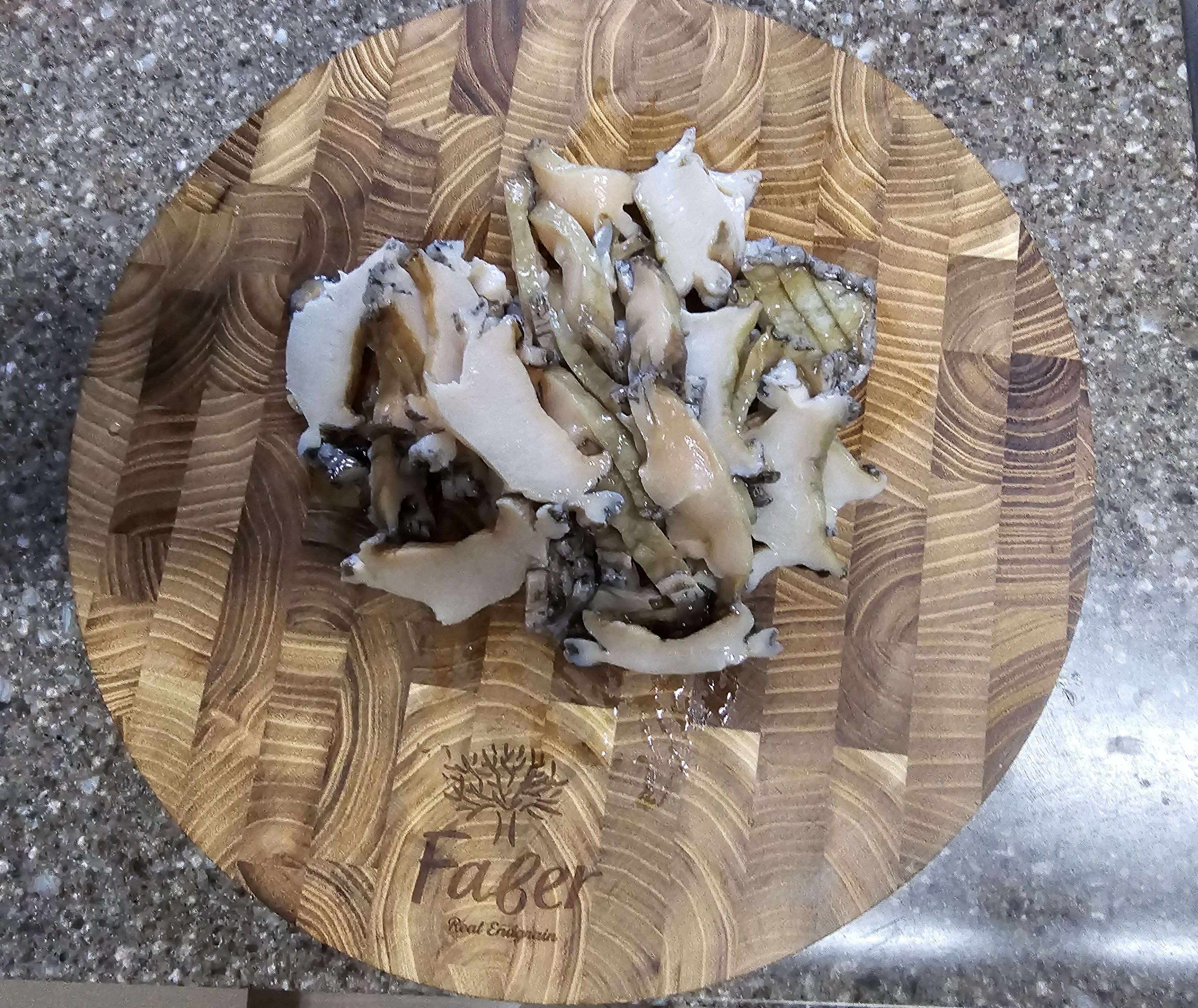 분리된 전복살은 얇게 슬라이스로 썰어줍니다.